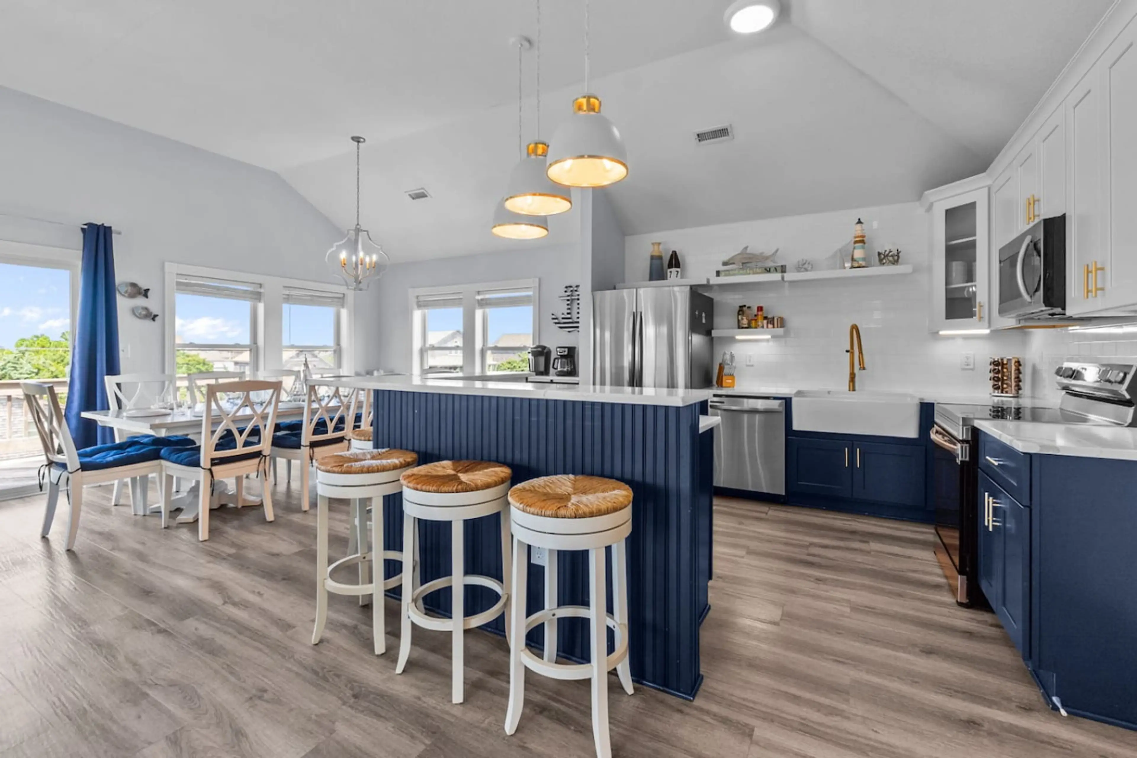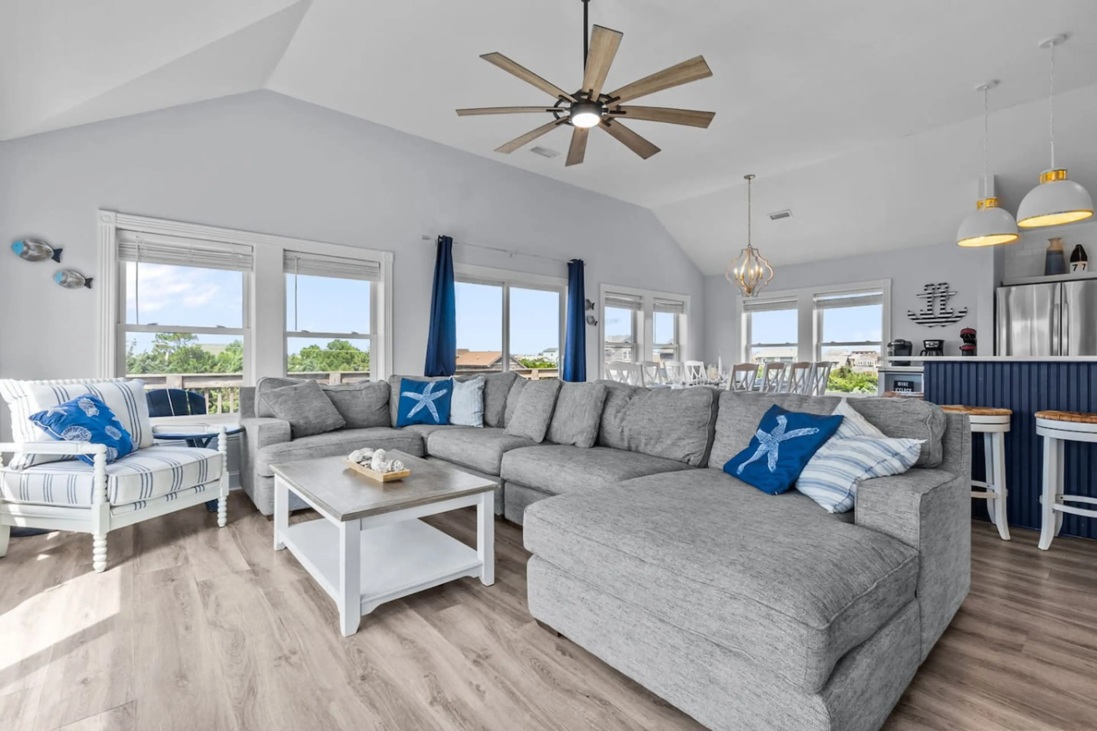 Newly remodeled 5BR home with a private pool, hot tub, and spacious wraparound decks. Enjoy a modern kitchen, flat-screen TVs in every room, a fitness room, and a bright, coastal interior. Just a short walk to the beach, this family-friendly retreat is perfect for groups seeking comfort, convenience...